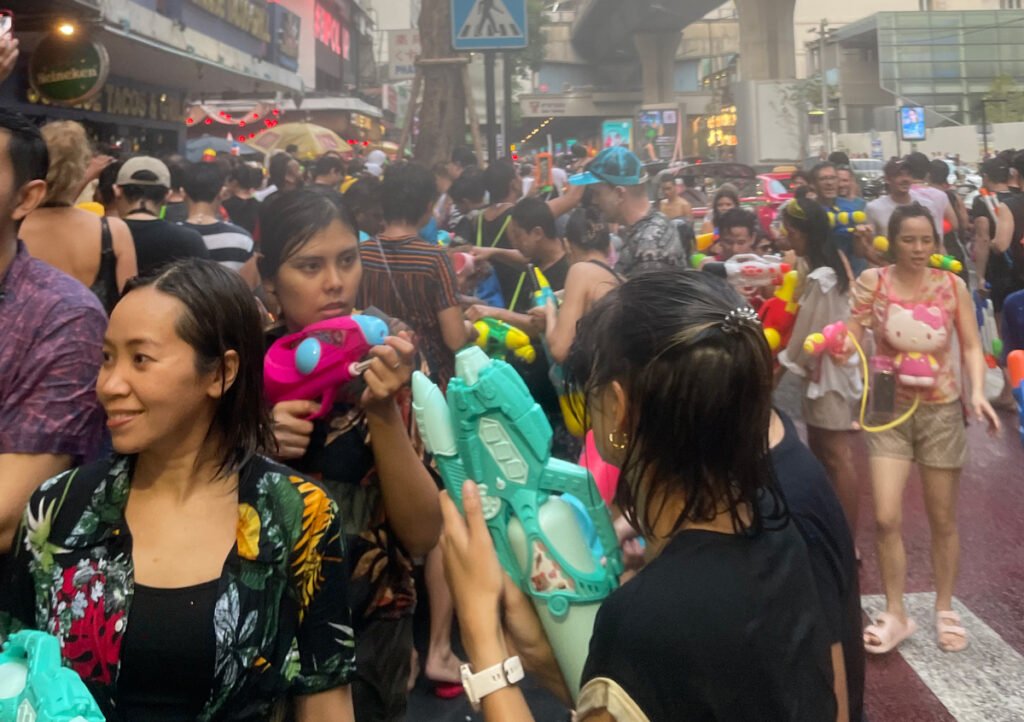 This is the wildest Songkran area in Bangkok (more party than cultural). One of the most famous Songkran destinations in the world, Khao San Road delivers a full-on party atmosphere. The entire street shuts down to traffic and transforms into a non-stop water battle zone filled with tourists, backpackers, and high-energy music.